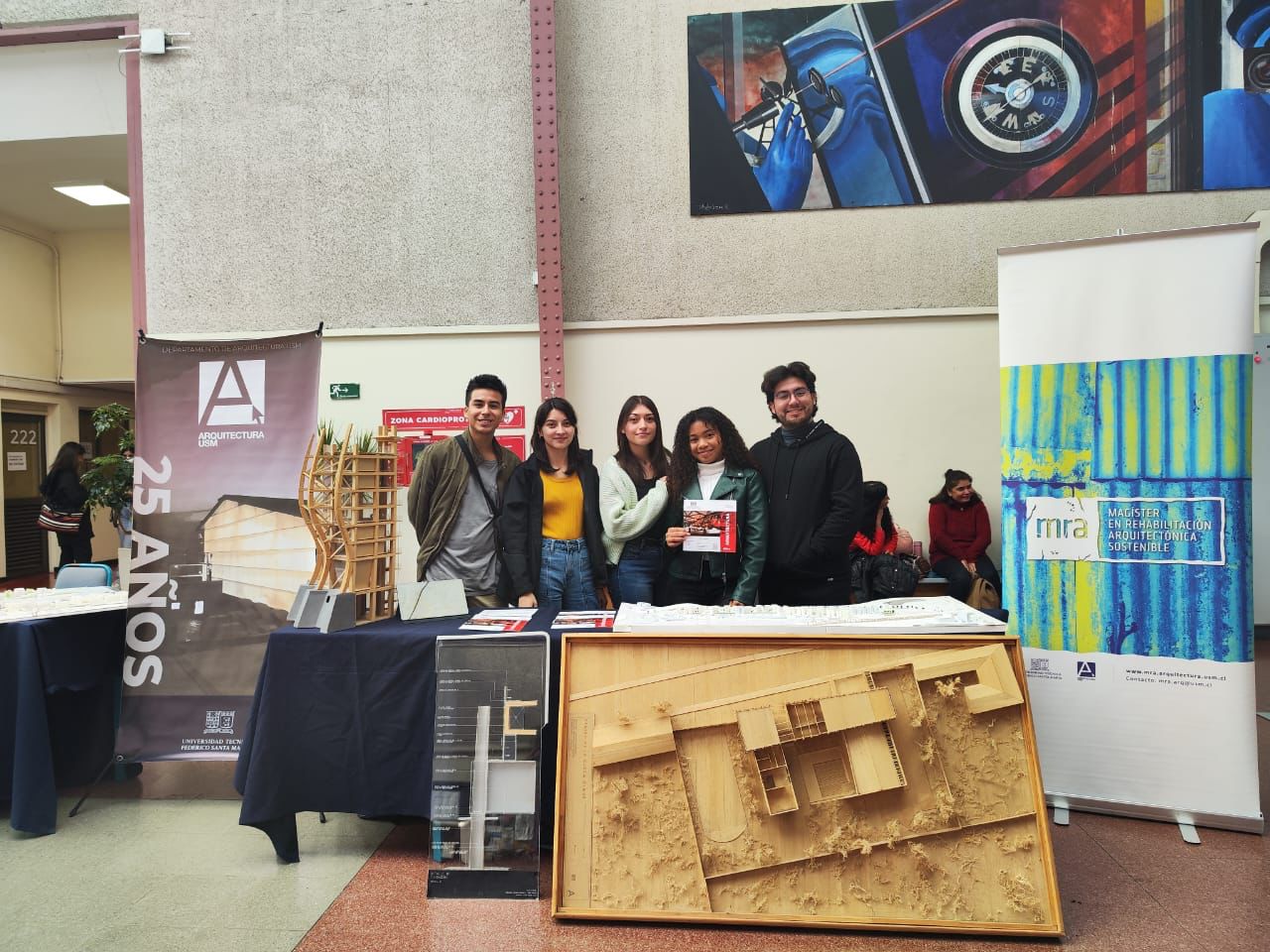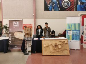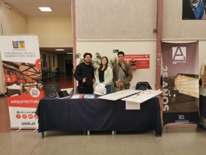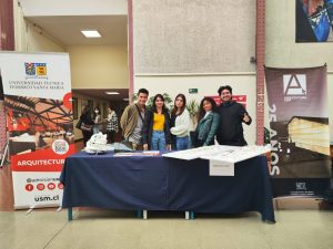 El stand de Arquitectura estuvo a cargo del grupo de estudiantes compuesto por: Carlos Vega, Aura Alvarado (estudiantes de pregrado), Katalina Juárez, Vivian Muñoz (estudiantes en proceso de titulación) y Víctor Herrera (estudiante de postgrado).