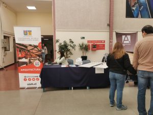 La jornada, que se desarrolló en el Hall del Edificio C de nuestra Casa Central, contó con una gran asistencia. Estudiantes que participaron en el Ensayo y padres que buscaban información para apoyar a sus hijos/as estuvieron presentes, interesados en conocer las distintas carreras con mayor profundidad. Nuestros estudiantes compartieron su experiencia, presentaron el Plan de Estudios, explicaron el funcionamiento de los talleres, las diversas opciones de titulación y nuestro programa de magíster. También se aclararon dudas sobre el perfil del arquitecto/a de la USM.