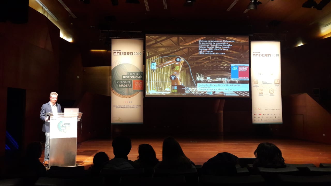 En el contexto del Seminario “La Madera como legado de Patrimonio e Identidad Cultural Local”, nuestros profesores Luis Felipe González y Sandro Maino realizarán el Lanzamiento del libro: Uniones carpinteras de Valparaíso; la geometría de ensambles y empalmes, que resume lo que ha guiado la investigación de nuestros profesores durante los últimos cuatro años, enfocada en la reproducción robotizada de elementos estructurales y ornamentales de geometría compleja para la restauración y rehabilitación del patrimonio arquitectónico chileno en madera.