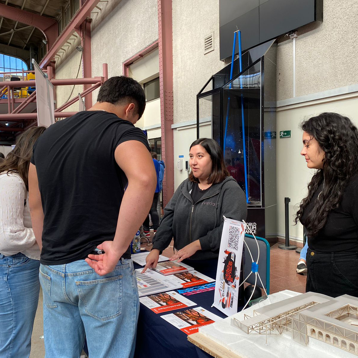 Durante la jornada, nuestros estudiantes compartieron su experiencia y ofrecieron información sobre nuestra carrera, utilizando material de apoyo como maquetas, afiches, el plan de estudios y otros recursos complementarios. También destacaron la dinámica de los talleres, las diversas opciones de titulación y nuestro programa de magíster.