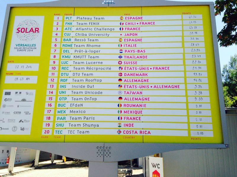 El día 13 de Junio, comenzó el traslado de Casa FENIX desde la IUT de la Universidad de La Rochelle a la Cité du Soleil en Versalles, donde sería la exhibición de la Competencia Internacional Solar Decathlon Europe 2014. El evento en su totalidad duró 42 días y durante las primeras dos semanas los 20 equipos universitarios de 16 países del mundo compitieron con sus viviendas solares instaladas en la Villa Solar. El día 27 de Junio fue la apertura al público y el comienzo de la competencia, entre las cuales se encuentran pruebas para medir el desempeño energético de la casa y los equipos tendrán que lavar ropa, calentar agua, hacer funcionar las duchas, utilizar la iluminación, entre otras actividades cotidianas del funcionamiento de una vivienda. Junto con medir el gasto energéticos, también se está midiendo la generación de energía, tanto la electricidad producida por las instalaciones fotovoltáicas como la temperatura que alcanza el agua para el uso de agua caliente sanitaria, entre otras instalaciones de energía renovables no convencionales.