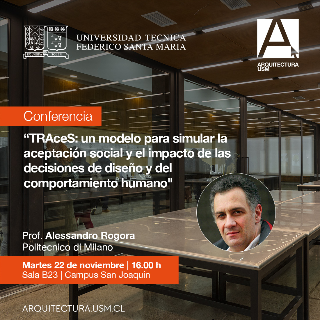 Nuestro Departamento de Arquitectura y el profesor Massimo Palme, invitan cordialmente a la conferencia “TRAceS: un modelo para simular la aceptación social y el impacto de las decisiones de diseño y del comportamiento humano”, del profesor Alessandro Rogora, del Politecnico di Milano.