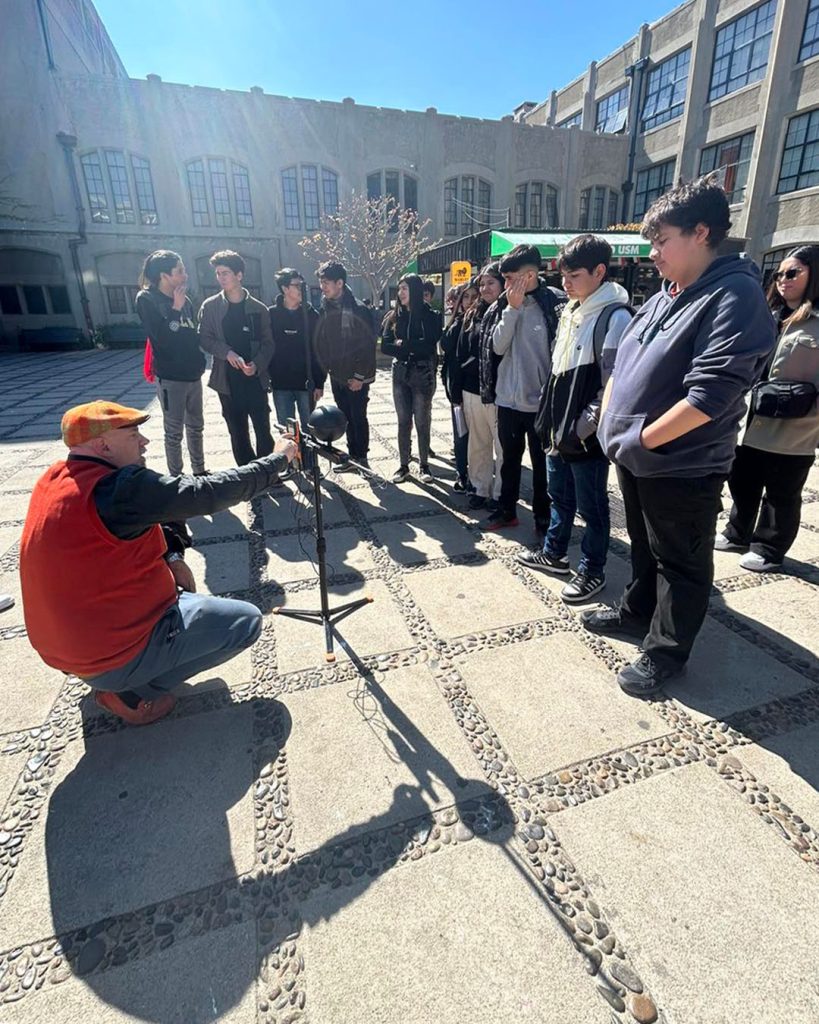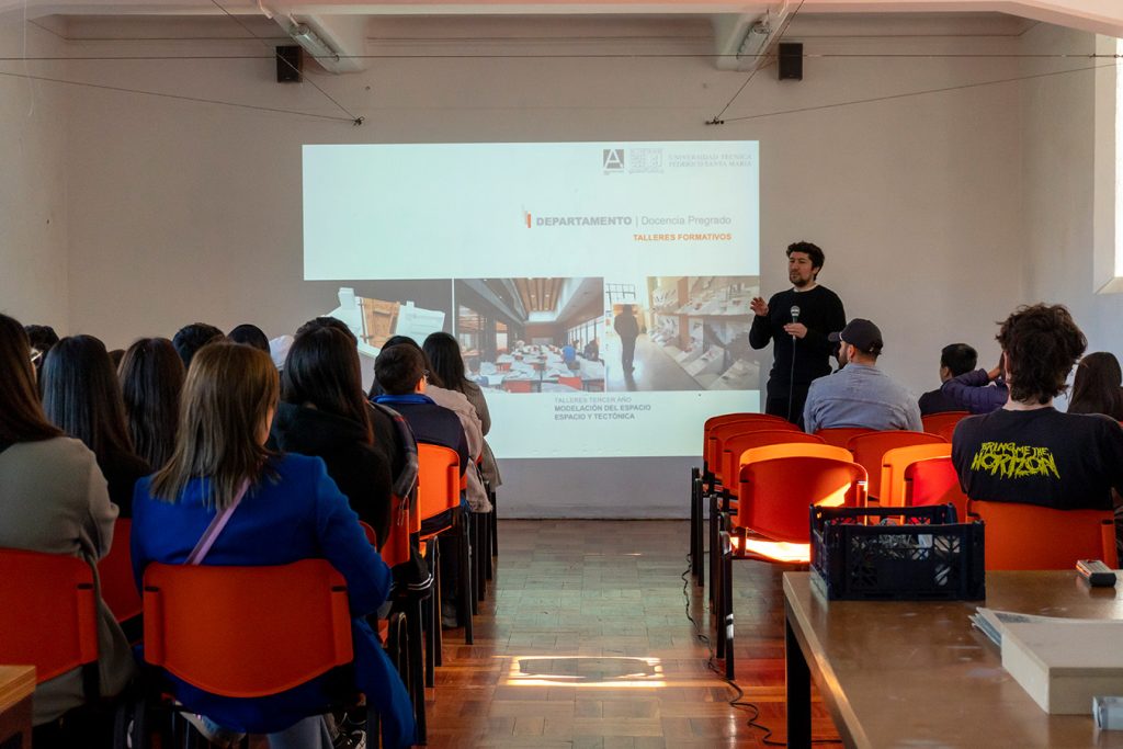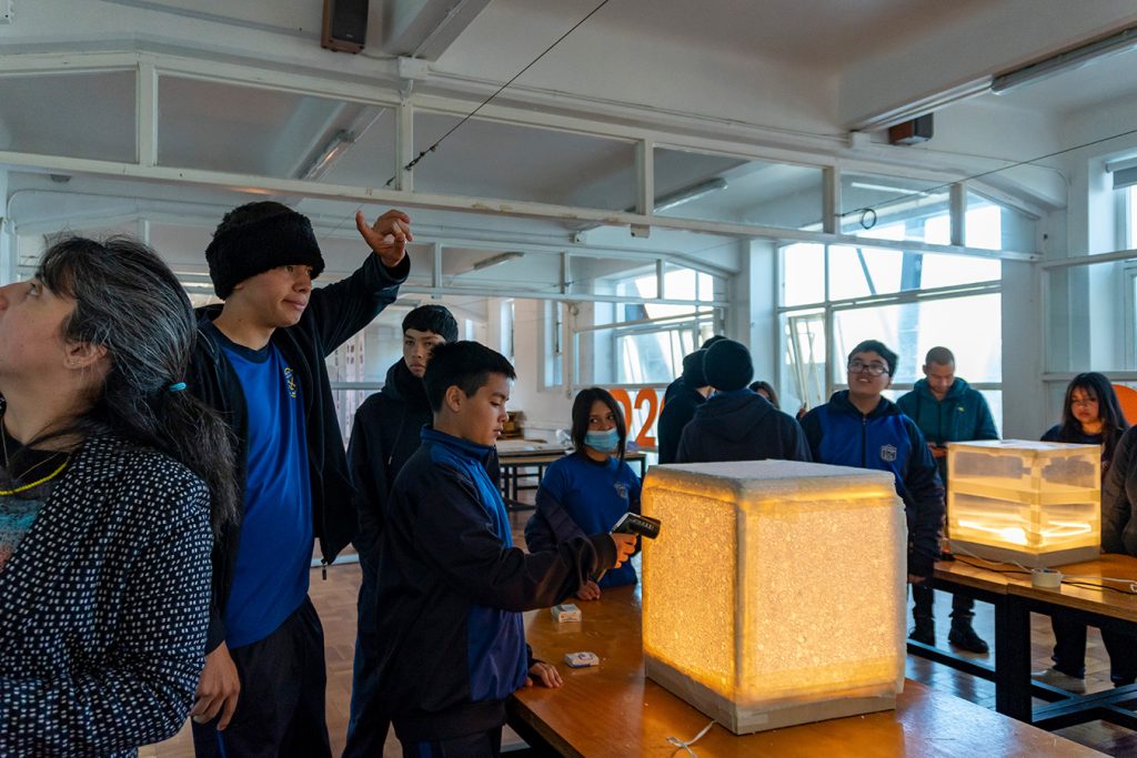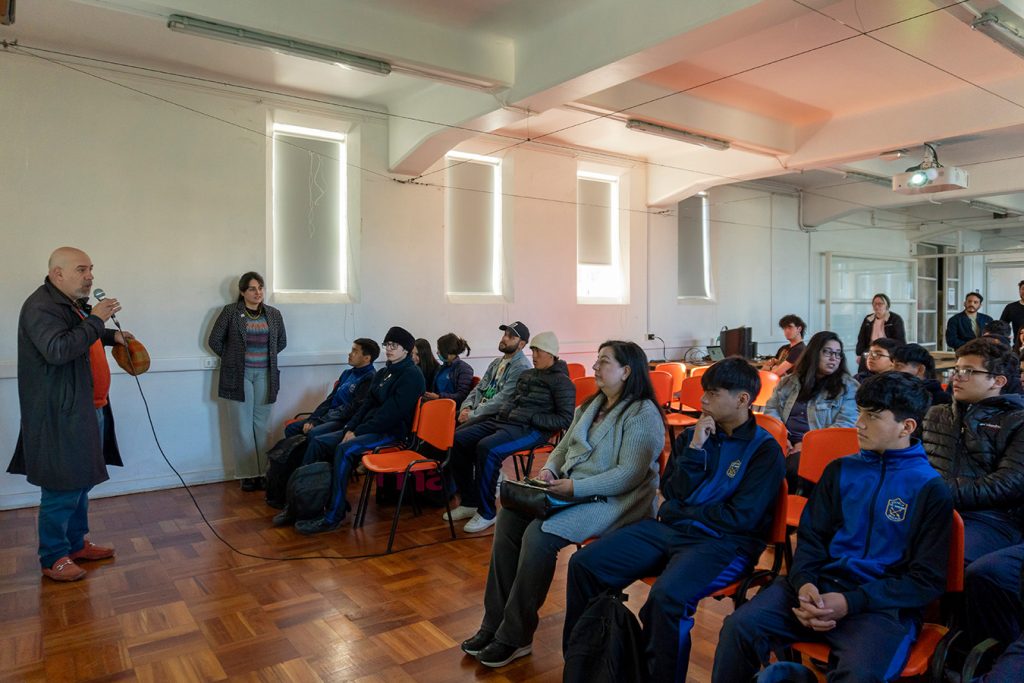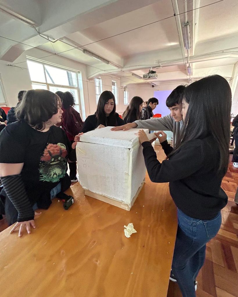 La jornada comenzó con un recorrido por nuestra Casa Central, guiado por los estudiantes Paulina Silva, Ricardo Marchant y Johann Aguilera, quienes acompañaron a los estudiantes visitantes y sus profesoras. El recorrido finalizó en nuestras instalaciones, con una bienvenida a cargo del profesor Christian Alvial, Coordinador de Vinculación con del Medio de nuestro Departamento, para luego dar inicio al taller titulado “Manos a la obra: diseño sustentable y aislamiento natural”.
