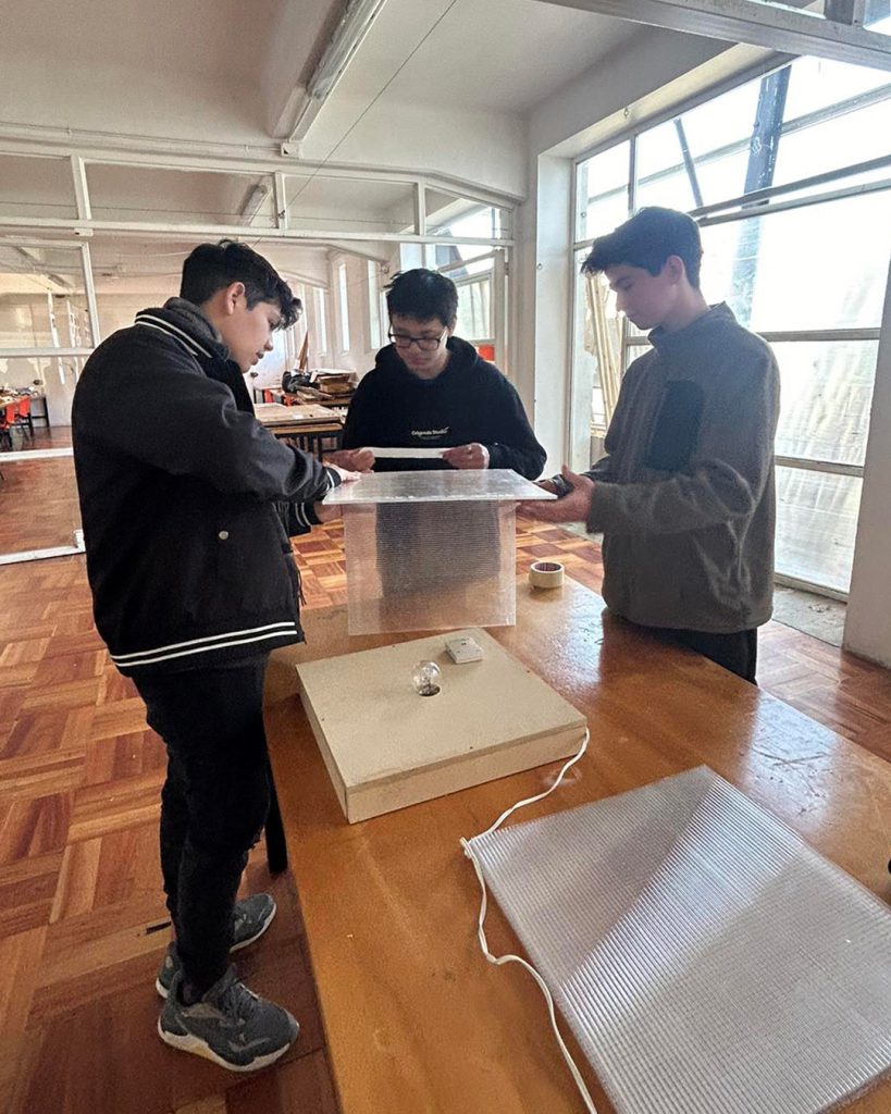Durante el taller, se respondieron preguntas de investigación planteadas previamente por los estudiantes a través de dos actividades prácticas. Estas fueron lideradas por las ayudantes del curso “Tecnologías Sustentables”, Paula Fernandois e Isabella Castillo, junto a los profesores Massimo Palme y Muriel Díaz. En la primera actividad, los participantes trabajaron con modelos elaborados con diferentes materiales de construcción para evaluar su capacidad de aislación térmica. Se utilizaron equipos de medición de temperatura del aire y de la superficie para observar el comportamiento térmico de cada material. En la segunda actividad, se evaluó el confort térmico mediante la medición de la temperatura del aire, temperatura radiante y velocidad del aire. Además, se realizó una demostración del uso de una cámara termográfica, permitiendo que los estudiantes visitantes participaran activamente en la medición y conocieran los equipos.