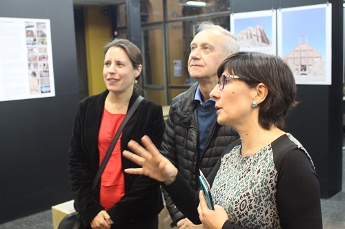 La muestra inaugurada este martes 16 de octubre, es parte del Proyecto de Investigación “Del ruido al silencio: valoración de ruinas industriales en zonas rurales” (Folio n° 413091) del Fondo Nacional de Desarrollo Cultural y las Artes, Convocatoria 2017, Región de Valparaíso, y contó con la participación de los arquitectos Sandro Maino (académico UTFSM) y Laura Gallardo (académica FAU), la artista plástica Valentina Soto, el arqueólogo Ricardo Labra, el trabajo audiovisual de Claudio Fredes (académico UTFSM) y quien lideró el proyecto, la académica de la Facultad de Arquitectura y Urbanismo de la Universidad de Chile, Claudia Torres.