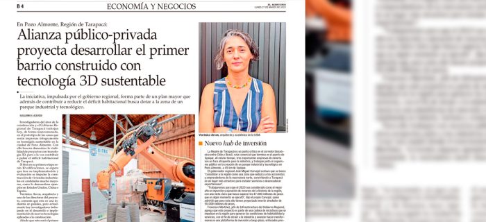 Medios destacan proyecto de impresión de hormigón con tecnología 3D, en el que participa nuestra profesora Verónica Arcos