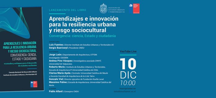 Académicos de nuestro Departamento presentarán en el lanzamiento del libro "Aprendizajes e innovación para la resiliencia urbana y riesgo sociocultural. Convergencia: ciencia, Estado y ciudadanía"