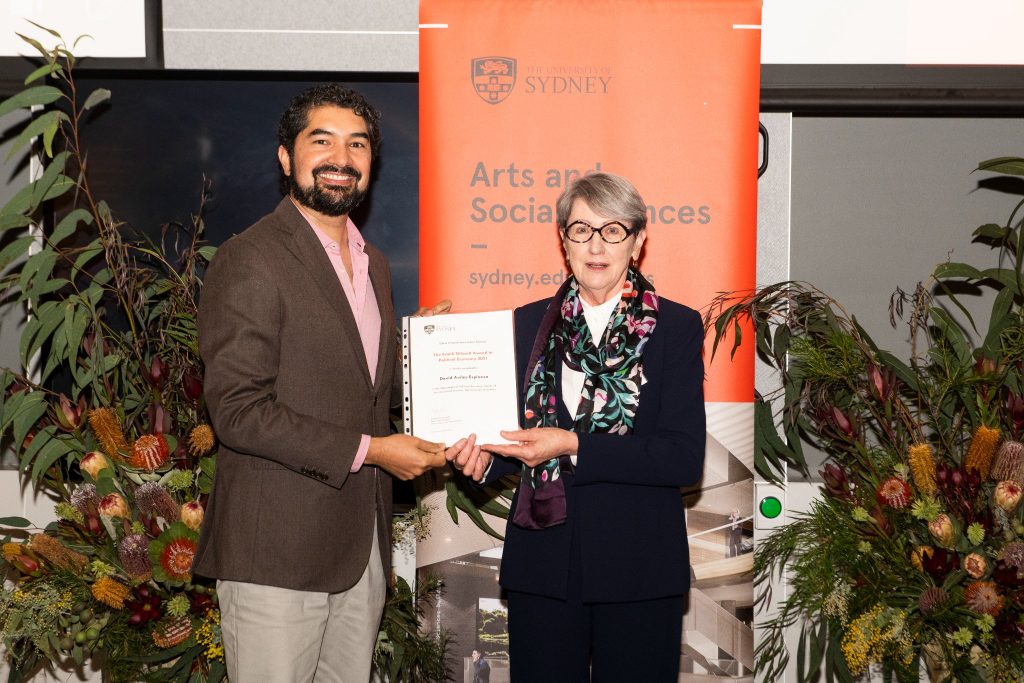 Nuestro ex-alumno y candidato a doctor en Economía Política, David Avilés Espinoza, recibió el premio “Frank Stilwell Award in Political Economy”, otorgado por la School of Social and Political Sciences de la Universidad de Sydney, Australia.