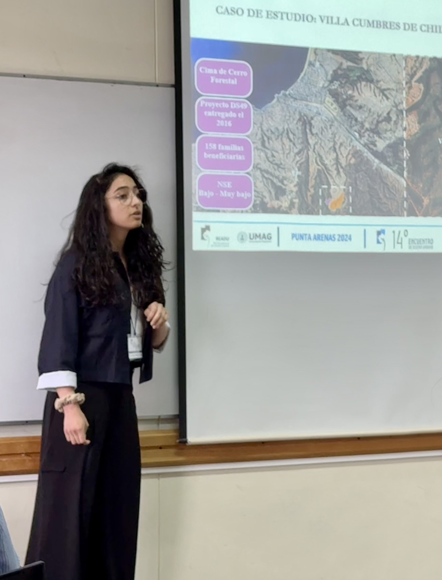 Monserrat, Rafael y Fernanda participaron activamente en el congreso, presentando sus investigaciones enmarcadas en sus tesis de pregrado. Las ponencias incluyeron “Movilidad Cotidiana y Género en Viviendas Sociales: El caso de Villa Cumbres, Viña del Mar”, “Transformaciones de las Prácticas Espaciales desde la Memoria Colectiva del Fuego en Campamentos: El caso de Mesana Alto, Valparaíso” y “Propuestas de Evaluación de Riesgo para Islas de Calor Urbano e Inundación en la ciudad de Copiapó”, respectivamente.