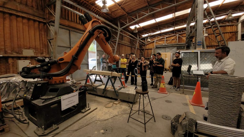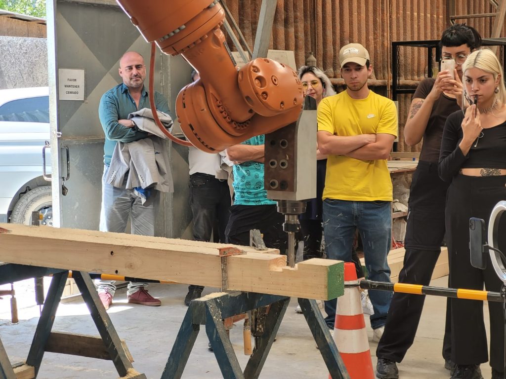 El pasado 10 y 11 de enero asistieron arquitectas, ingenieros, diseñadores, académicos y estudiantes a dos jornadas de trabajo de diseño computacional y fabricación robotizada. Por primera vez se mecanizaron uniones carpinteras con el robot KUKA KR120 R2500 del laboratorio CITEC. Este hito abre oportunidades de colaboración e investigación en torno a la construcción robotizada en madera entre nuestro Departamento de Arquitectura y el CITEC de la Universidad del Bío-Bío.