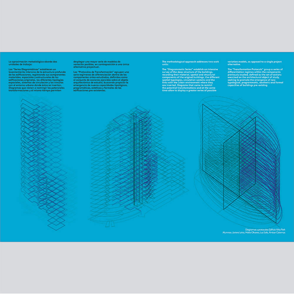 El artículo presenta la metodología académica abordada por el taller, los que trabajan sobre la base de la reconfiguración de edificaciones pre-existentes en 3 formatos de edificaciones; el primero de ellos sobre torres de vivienda en altura, el segundo sobre conjuntos de vivienda de densidad media y el tercero sobre edificios de oficinas, todos ellos ubicados en las ciudades de Viña del Mar y Valparaíso.