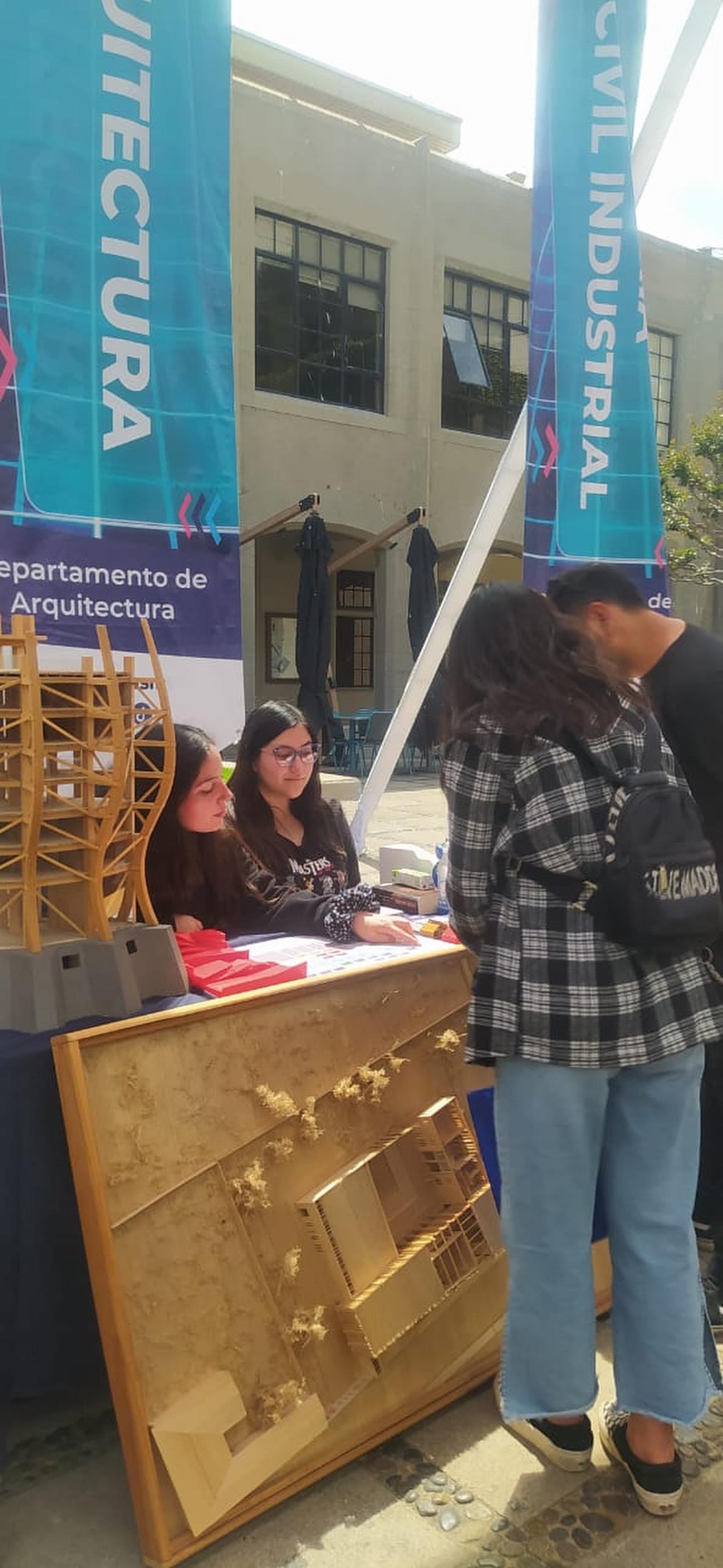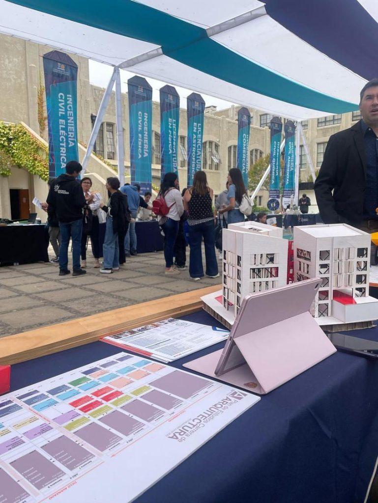 Para la jornada realizada en Casa Central, la dupla conformada por las estudiantes Nicole Ferreira y Camila Díaz fue la encargada de recibir al público asistente en el stand de nuestra carrera, en el cual estuvieron respondiendo consultas sobre el plan de estudios, empleabilidad, experiencia universitaria, entre otras. Además, se realizaron visitas a la instalaciones de nuestro Departamento, en la que se recorrieron áreas comunes y salas de talleres. Durante este período, no solo se acercaron futuros estudiantes, sino también contamos con la presencia de niños y niñas, cuyo interés se centró en lo expuesto en el stand y que consistió en maquetas realizadas en impresoras 3D, otras con corte láser y algunos proyectos de titulación.